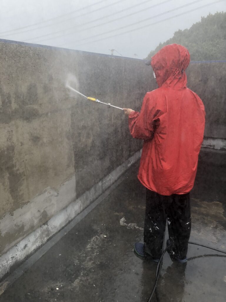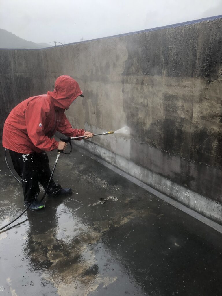屋上の洗浄をしました。夏、秋に行っています。今回も息子と一緒にしています。